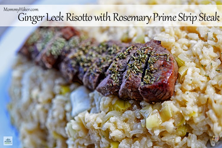 In a medium size sauce pan, combine your white wine, chicken stock and beef stock and set it on the back burner on low heat to keep it warm. Slice your leeks, finely dice your onions and grate the garlic and ginger, then toss them in a deep pan (or a dutch oven with the lid on) on medium-high heat with 2 tablespoons of olive oil and saute them for about 5 minutes. Add to the pot the arborio rice and saute for another 5 minutes until the edges of the rice are translucent. Then, add just enough of the warm wine and stock mixture to cover the rice and reduce the heat of the risotto to low. Make sure to stir your risotto frequently and each time the wine and stock mixture has absorbed fully into the rice add more just to cover the top of the rice. Repeat this process until the wine and stock mixture is gone! This usually takes about 45 minutes. You can use this time to grate your cheese, zest and juice the lemon and preheat your broiler. To prepare your strip steaks, sprinkle them lightly with salt and pepper and freshly chopped rosemary. Place the steaks in the broiler and cook for 5 minutes (our steaks were about an inch and a half thick) on each side for a perfect medium rare. When all of your wine and stock has been absorbed into the risotto toss in your gouda and cheddar cheeses, lemon juice and lemon zest and simmer for just a minute, then serve and enjoy!