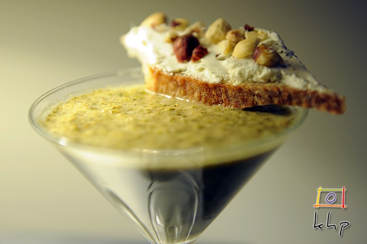 Preheat the oven to 425 degrees. Take the outer skin of the garlic bulb off, slice off the very top drizzle with olive oil and wrap in aluminum foil. Place it on the bottom rack of the oven and set the timer for 15 minutes. Chop your broccoli into florets, toss in olive oil, salt and pepper, place in a large roasting pan and place it in the oven when the timer goes off. Set the timer for another 15 minutes. Dice the onion and throw it into a deep pot on the stovetop with a little olive oil and saute for about 5 minutes on medium heat. When the timer goes off, take out your garlic and stir your broccoli. Place the broccoli back in the oven and set the timer for the last 15 minutes. When the broccoli is done, place it in the pot with the onions, 5 cloves of the roasted garlic, nutmeg, thyme, salt and pepper and enough water to just cover the ingredients. On a low heat use your emulsifier to puree your soup in the pot. Add hot water in small amounts to bring it to the desired consistency (I added about 2 cups), then add your cream. Allow it to simmer for another 5 minutes. Thinly slice a baguette and place in the broiler for about 3 minutes. Keep a close eye on them to make sure they don’t burn! When they become a nice golden brown, take your crostinis out of the broiler, spread with goat cheese and sprinkle with crushed, raw hazelnuts. Once the heat is turned off under the soup, add the lemon juice and serve! Enjoy!